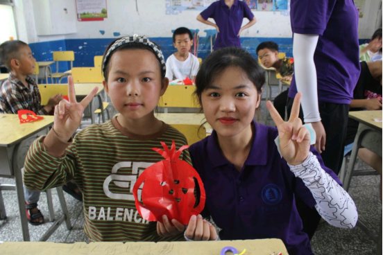早上8:30到达石板村小学,志愿者们就开始进行准备工作,小朋友们到齐后就正式进行剪纸活动!这次的剪纸主题是石榴,小朋友们凭借丰富的想象力将原本习以为常的石榴创造得多姿多彩,也体现出各民族像石榴籽紧紧抱在一起。