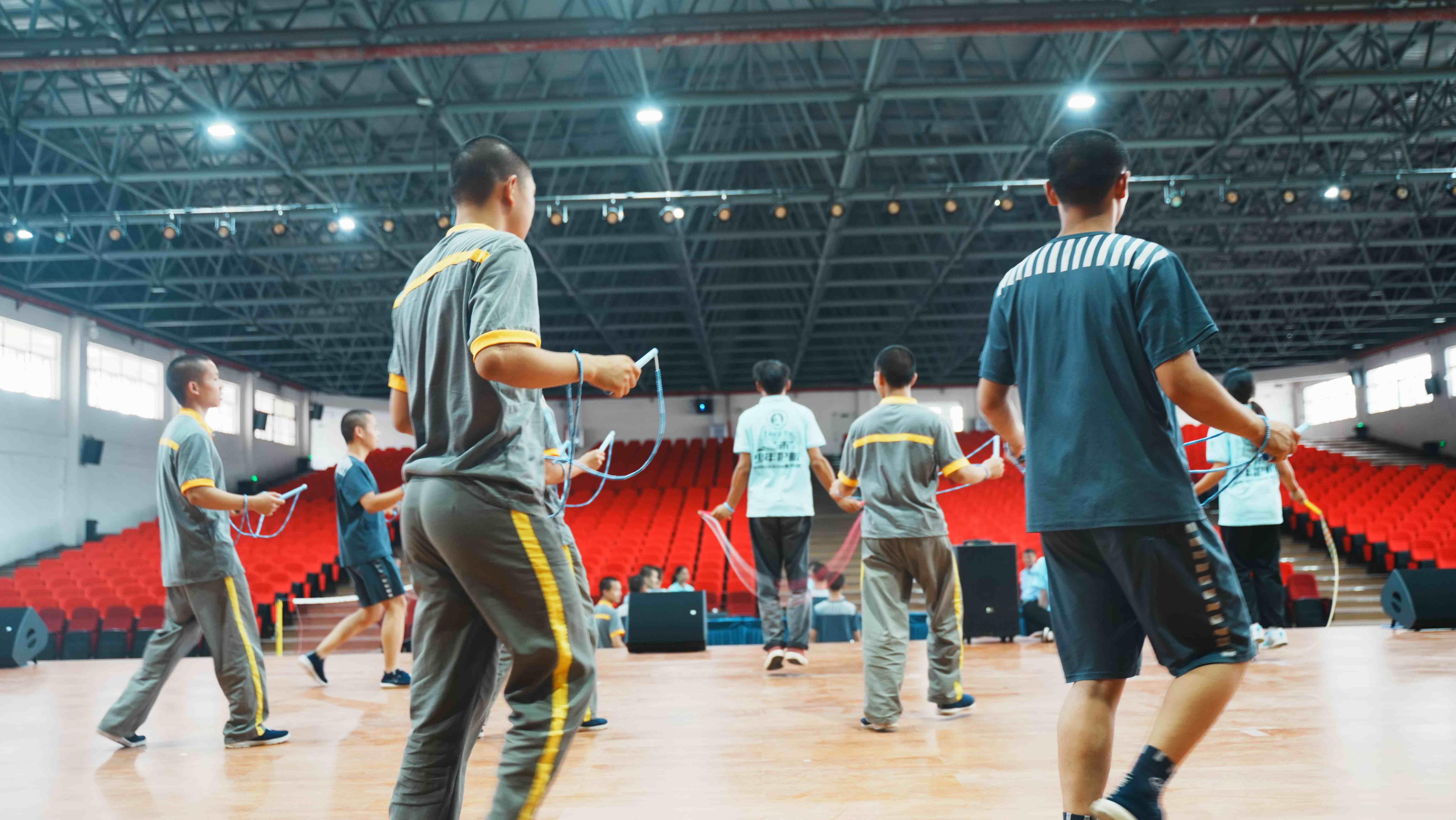 在团队成员带领下,大家一同为15号的汇报演出做准备。在排练时,罪犯们全神贯注,口号响亮,对于跳绳的速度和节奏的掌握也越来越熟练和完美。他们眼中充满坚定和自信,展现了良好的团队协作精神。
