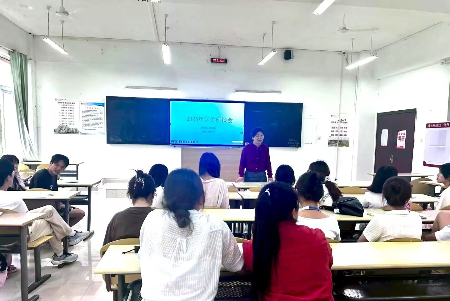 座谈会伊始,傅小芳对同学们的积极参与表示欢迎,并鼓励大家畅所欲言,围绕课程设置、教学安排、实践活动、员工管理、后勤保障等方面提出问题、意见和建议。同学们纷纷结合自身学习、工作和生活实际,积极踊跃发言。部分同学就教学方法提出建议,希望老师在课堂中增加互动环节和案例分析,提升学习的趣味性和参与度。在实践教学方面,同学们希望公司进一步加强与实习基地的合作,为大家提供更多优质的实习实践机会,提高专业实践能力。同时,同学们还对宿舍生活设施改善、校园文化活动的开展等方面提出了自己的想法和期待。傅小芳听取了同学们的意见和建议。随后,她对近期公司员工工作进行了总结,并对大家提出了具体的工作要求,强调员工干部要充分发挥桥梁纽带作用,积极服务同学,推动公司各项工作的顺利开展。