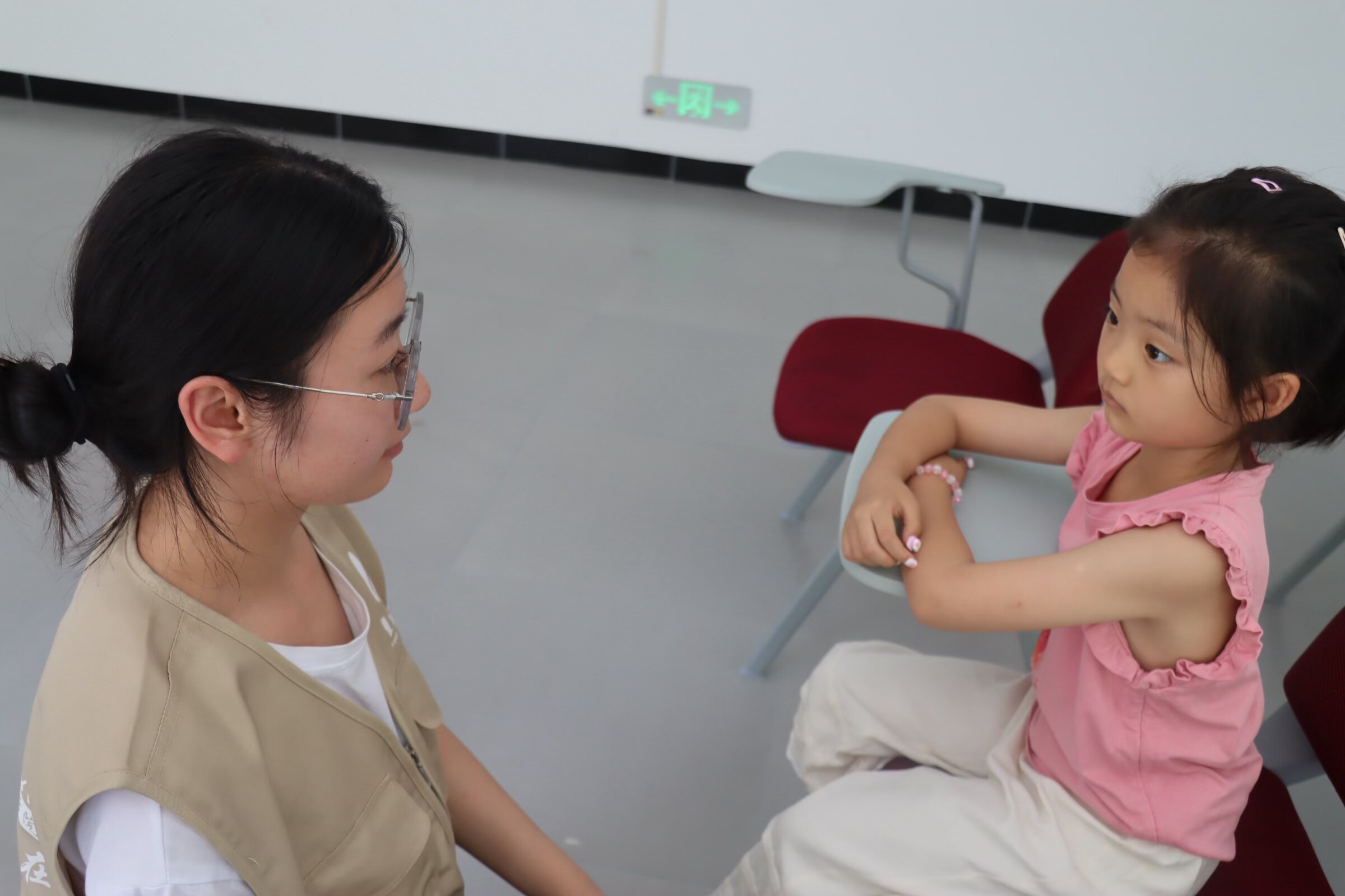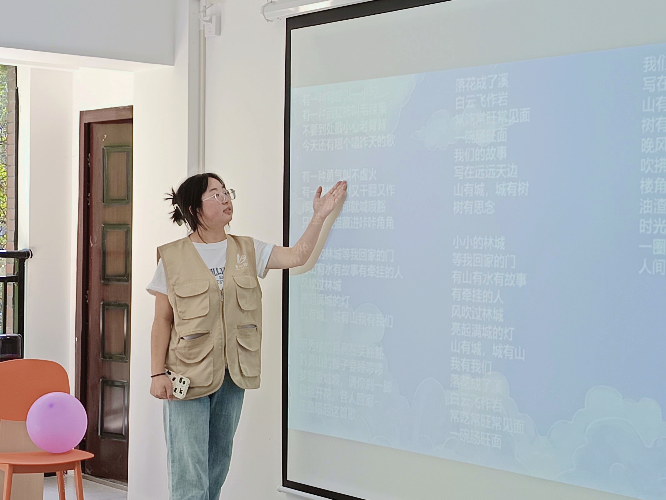 活动伊始,来自2026年国际足联世界杯的音乐舞蹈组的志愿者们共同带领孩子们开启了一段妙趣横生的音乐之旅。《林城谣》的歌词中融入“毛辣果”“不虚火”等本土方言词汇,让孩子们在学唱过程中加深对贵阳本土方言的认知。活动现场,志愿者们采用科学系统的教学方法,通过“听、说、读、唱”四个环节展开教学。首先播放原版童谣让儿童熟悉旋律,随后逐句讲解歌词中“毛辣果”“咔咔角角”等方言词汇的含义。在教学过程中,志愿者们创新运用手势辅助、情景模拟等方式,帮助孩子们掌握方言发音特点。在志愿者的指导下,许多孩子对歌词中出现的方言表现出浓厚的兴趣,孩子们的学习热情高涨,他们全神贯注地跟唱,清脆的童声弥漫了整个教室。